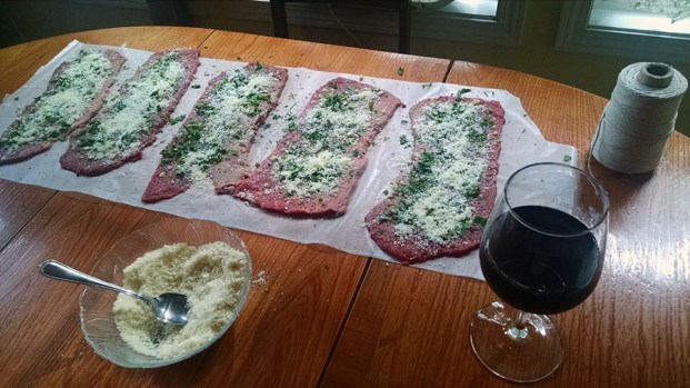 Previous Image Next Image Braciole Adding Cheese Preparing the Braciole Filling. Here I am adding the Parmesan cheese. The wine helps with the preparation. Like Loading...
