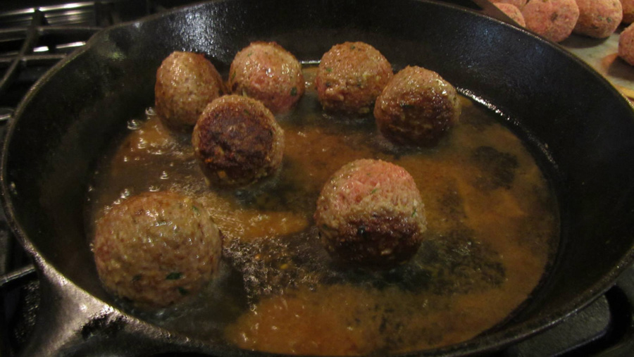 Browning the Meatballs and Braciole