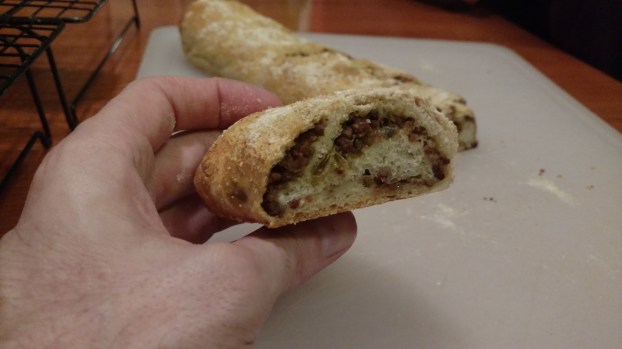 Previous Image Next Image Sausage Bread YUM A lovely slice of sausage bread this time with Mozzarella and Parmesan cheese added. Quite wonderful! Like Loading...