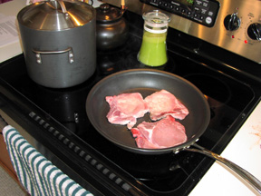 Browning the pork chops for the sauce